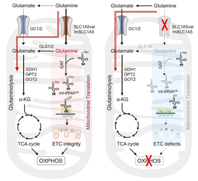 2025年12月22日,复旦大学代谢与整合生物学研究院李福明课题组在国际知名期刊Molecular Cell在线发表了题为“Mitochondrial glutamine import sustains electron transport chain integrity independent of glutaminolysis in cancer”的研究论文。该研究首次报道了肿瘤线粒体谷氨酰胺转运(MGI)独立于传统谷氨酰胺分解代谢维持电子传递链(ETC)完整性和细胞呼吸的关键功能。研究发现,阻断SLC1A5var介导的MGI而非谷氨酰胺分解代谢导致严重的线粒体功能缺陷。机制上,抑制MGI并不影响谷氨酰胺回补TCA循环,却限制了线粒体谷氨酰胺-tRNA(Gln-mt-tRNAGln)的生物合成,这是癌细胞线粒体中所有氨酰tRNA的限制因素。进一步发现,小鼠肝脏中敲除Slc1a5或在人异源移植瘤中靶向SLC1A5var,均可阻止Gln-mt-tRNAGln的生物合成和线粒体翻译,并显著抑制肿瘤生长。