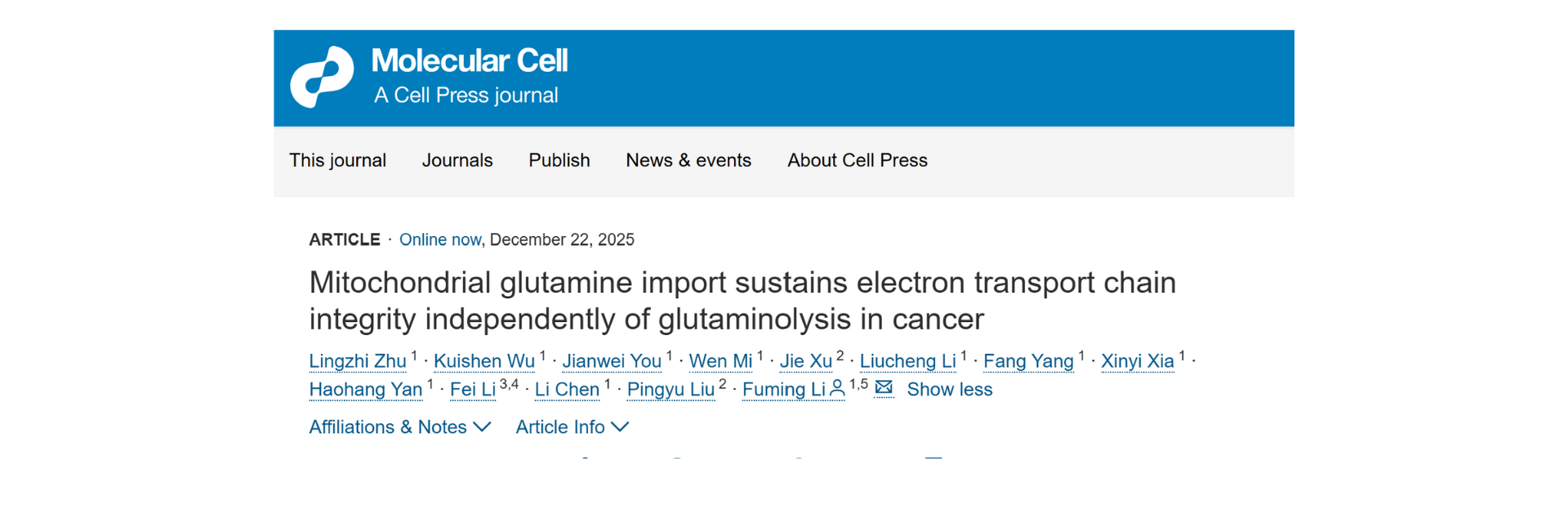 李福明课题组揭示肿瘤线粒体谷氨酰胺转运维持电子传递链完整性的新功能