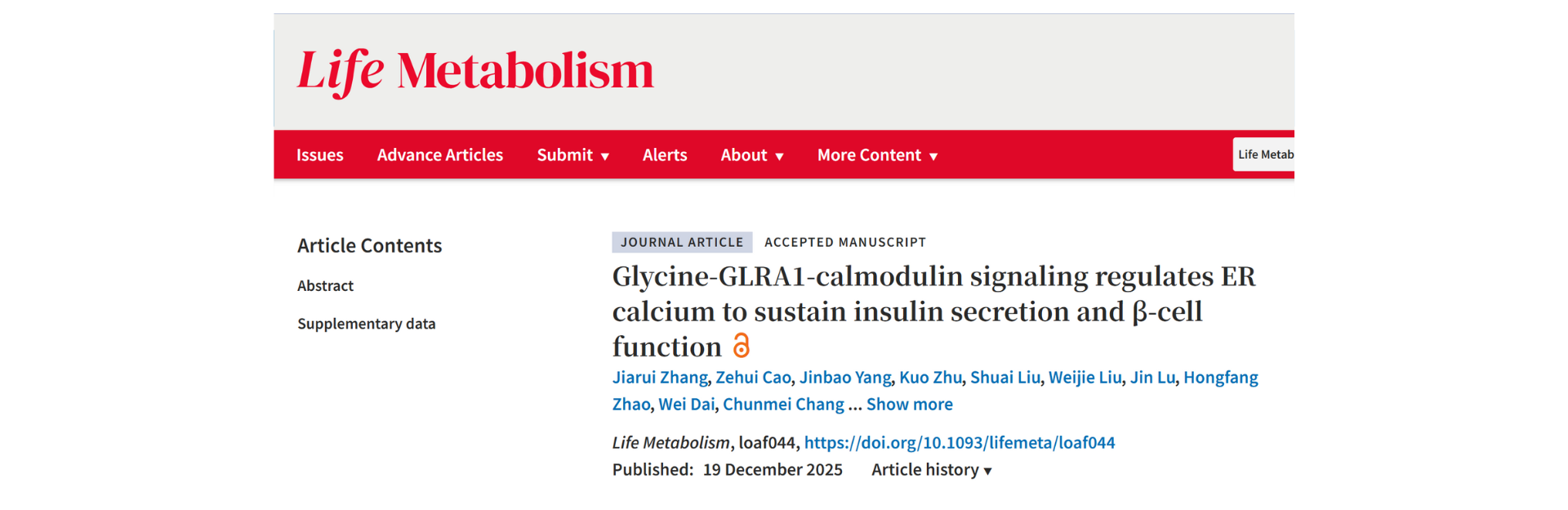 黄林章课题组揭示甘氨酸-GLRA1-钙调蛋白通过调节内质网钙稳态维持胰岛素分泌及β细胞功能